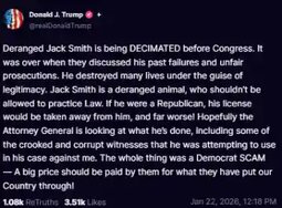 >>24157289, >>24157316, >>24157523 WATCH LIVE: Jack Smith testifies publicly about his Trump investigations