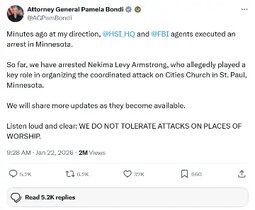 - FBI Director Kash Patel (https://x.com/fbidirectorkash/status/2014409617652978100?s=61)