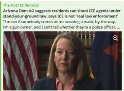 >>24161238 Arizona AG Kris Mayes wildly suggests residents can shoot masked ICE agents under state’s self-defense laws