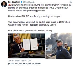 >>24181458, >>24181484 @WhiteHouse President Trump is stepping in and cutting red tape so Los Angeles can FINALLY rebuild bigger, better, and stronger than ever.