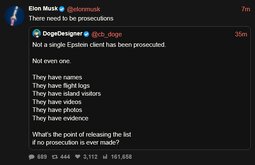 >>24200775 [theY] are desperate to make Elon Musk look bad. But he has been consistently calling for the prosecutions of every wrongdoer