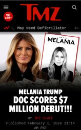 >>24202652 @realDonaldTrump BLOCKBUSTER! Melania Trump film on track for best opening weekend of any documentary in last 10 years: