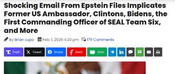 >>24204263 Shocking Email From Epstein Files Implicates Former US Ambassador, Clintons, Bidens, the First Commanding Officer of SEAL Team Six, and More