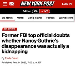 >>24236777 ICYMI: Former FBI Assistant Director Chris Swecker has expressed skepticism about whether Nancy Guthrie’s disappearance is truly a kidnapping