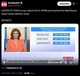 >>24236457, >>24236467 Turning Point USA’s (TPUSA) “All-American Halftime Show” garnered at least 25 million views Sunday