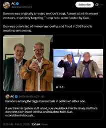 >>24236321, >>24236347 🇺🇸 Epstein was working with Steve Bannon on a global populist movement before his arrest. "Draining the swamp" or whatever.