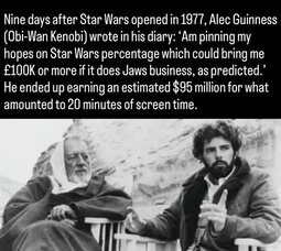 At least he got paid. Rumor is David Prowse, the guy who wore the Darth Vader suit, never received a cent for Return of the Jedi. He was told the movie never made a profit.