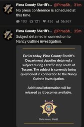>>24243067 Person detained by PCSD in connection to Nancy Guthrie's disappearance