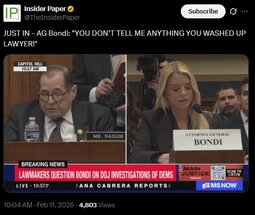 'I told you about that, Attorney General, before you started speaking,' Raskin said.Bondi snarled back: 'You don't tell me anything. You washed up loser, you're not even a lawyer.'