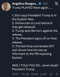 The Dems DEMANDED that the Epstein files be released, because they thought this would be a great opportunity for them to "Get Trump". Now that it didn't turn out that way, they want the Epstein files pulled. It's funny AF watching them all panic.