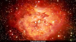 Stars form from collapsing gas and dust attracted to the passing black hole. It's a process that would last for tens of millions of years as the runaway black hole crosses a galaxy.