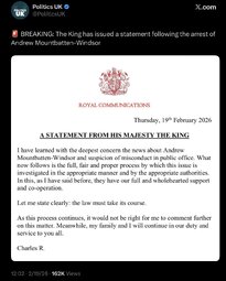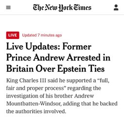 >>24276916, >>24276938, >>24276944, >>24276945, >>24276956, >>24276966, >>24277007 Andrew Mountbatten-Windsor has been arrested