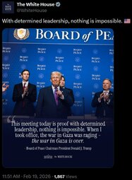 >>24277597, >>24277761, WATCH LIVE: President Trump Hosts a Board of Peace Event - 02/19/26