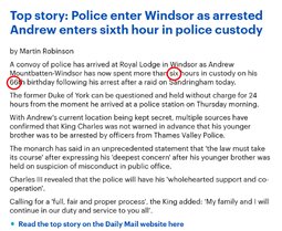 >>24277228, >>24277305, >>24277401, >>24277412 King Charles releases statement as Andrew arrested