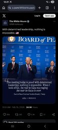 >>24278064, >>24278070 President Trump: Today, it's a tremendous honor to welcome you all to the United States Institute of Peace for the inaugural meeting of the Board of Peace… I believe it's the most consequential board…