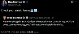>>24285538 @Scavino47 Check your email, James💻📧… EDVA judges do not pick our US Attorney. POTUS does. James Hundley, you’re fired!