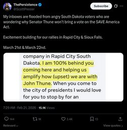 >>24285928 Senator McConnell Chief of staff - Terry Carmack CONFIRMED to be holding up Save Act. The office number is: 202-224-2541