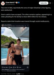 Two men in Bali, reportedly the sons of major Ukrainian crime figures, were abducted.