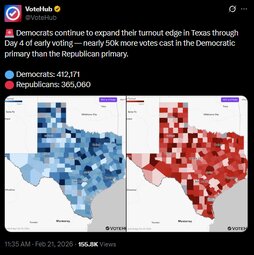 >>24288534 Democrats continue to expand their turnout edge in Texas through Day 4 of early voting