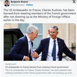 The US Ambassador to France, Charles Kushner, has been banned from meeting members of the French government after not showing up at the Ministry of Foreign Affairs earlier in the day.