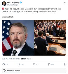 🚨 JUST IN: Rep. Thomas Massie (R-KY) will reportedly sit with the DEMOCRATS tonight for President Trump’s State of the Union