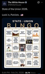 >>24303149 Official WhiteHouse BINGO CARD - State of the Union 2026. Lock in, Patriots . 🇺🇸