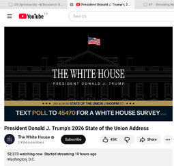 >>24302014, >>24302095 WATCH LIVE - President Donald J. Trump’s 2026 State of the Union Address