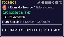 >>24304635, >>24304652, >>24304956, >>24305083 107 minutes is longest SOTU ever SOTU records!!!