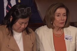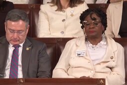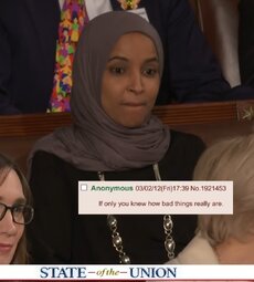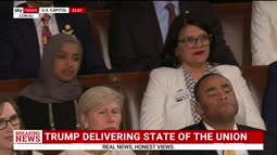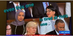 >>24304664, >>24304732, >>24305094 Ilhan Omar and Rashida Tlaib scream, shout and point their fingers at Trump during his speech.