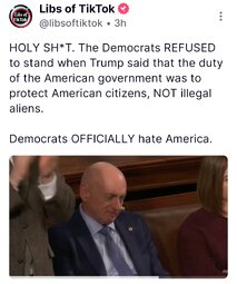 >>24304479 The immortal visual of the entire Democrat partyāupon explicit repeated invitationārefusing to stand for the core moral principle that US government owes its allegiance to US citizens and not foreign criminal invaders, is the most shocking image in the history of the US Congress.