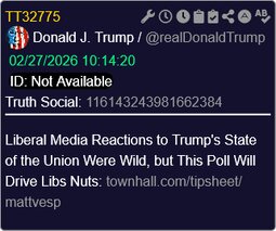 >>24315023 @realDonaldTrump Liberal Media Reactions to Trump's State of the Union Were Wild, but This Poll Will Drive Libs Nuts