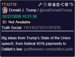 >>24315071 @realDonaldTrump Big ideas from Trump's State of the Union speech, from federal 401k payments to Dalilah's law