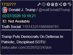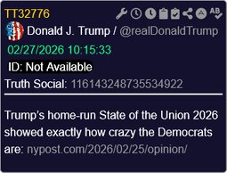 >>24315030 @realDonaldTrump Trump’s home-run State of the Union 2026 showed exactly how crazy the Democrats are