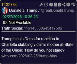 >>24315139, >>24315168 @realDonaldTrump Trump blasts Dems for reaction to Charlotte stabbing victim’s mother at State of the Union: ‘How do you not stand?’