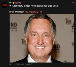 >>24316891 Legendary singer, Neil Sedaka, died on Friday, Feb. 27 at the age of 86.