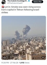 Just in: Smoke was seen rising across Iran's capital in Tehran following Israeli strikes