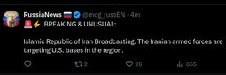 >>24318673, >>24318697, >>24318701, >>24318755, >>24318761 Operation Epic Fury/Roaring Lion