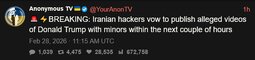 🚨⚡️BREAKING: Iranian hackers vow to publish alleged videos of Donald Trump with minors within the next couple of hours