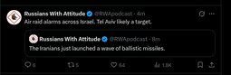 >>24318476, >>24318476, >>24318482, >>24318485, >>24318501, >>24318502, >>24318504, >>24318509, >>24318512, >>24318514, >>24318530, >>24318652, >>24318655, >>24318666, >>24318693, >>24318819, >>24318860, >>24318865 Iranian missiles launched against Israel, US bases, other middle east countries