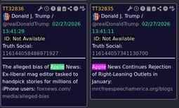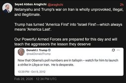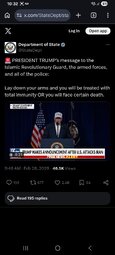 >>24318386, >>24318403, >>24318426, >>24318429, >>24318430, >>24318471, >>24318706 Trump statements on Iran