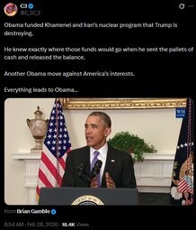 >Obama funded Khamenei and Iran’s nuclear program that Trump is destroying.