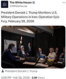 >>24320854, >>24320860, >>24320873 @WhiteHouse President Donald J. Trump Monitors U.S. Military Operations in Iran: Operation Epic Fury