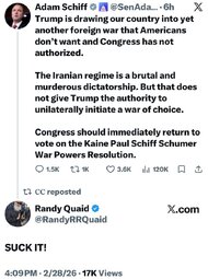 >>24322280 Bipartisan revolt targets Trump's war powers after massive Iran strikes