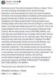 >>24321365, >>24321377, >>24321374 From President Trump: “Khamenei, one of the most evil people in History, is dead…” / Dan Deltas