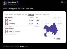 >>24337602 Crockett is already claiming that there was "cheating" in the Texas Democrat Primary election
