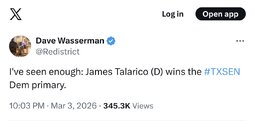 >>24337519, >>24337526, >>24337780, >>24337823 POLLS IN DALLAS COUNTY ARE NOW OPEN UNTIL 9:00 P.M. obtained a court order to extend hours following today’s voting access issues