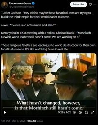 Tucker Carlson- “Hey I think maybe these fanatical Jews are trying to build the third temple for their world leader to come.