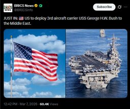 - Third carrier surge: USS George H.W. Bush heads to Middle East as Iran war escalates, Fox reports.
