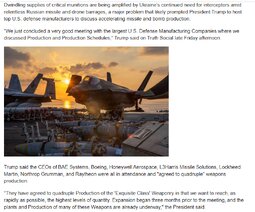 >>24352765 @LockheedMartin We have agreed to quadruple critical munitions production. As a result of President @realDonaldTrump's leadership, we began this work months ago with @SecWar Hegseth and Deputy Secretary Feinberg.