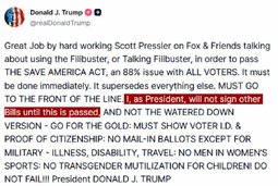 >>24356997 @realDonaldTrump Great Job by hard working Scott Pressler on Fox & Friends talking about using the Filibuster, or Talking Filibuster, in order to pass THE SAVE AMERICA ACT, an 88% issue with ALL VOTERS.